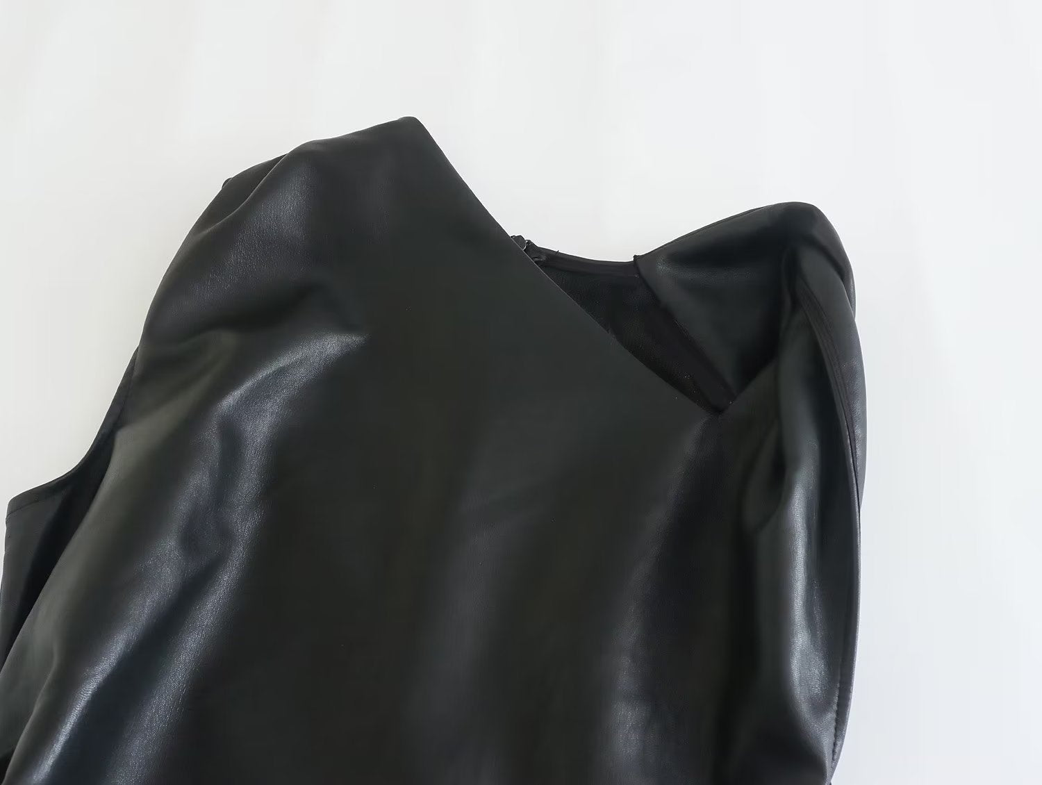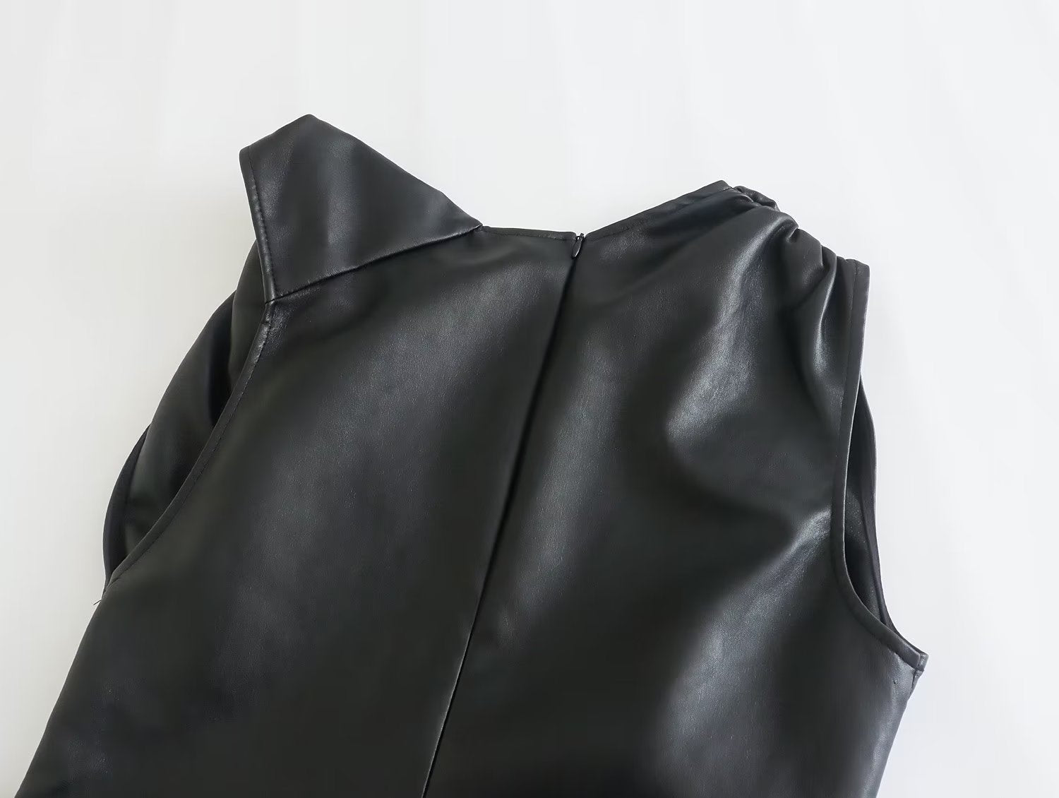 Sleeveless Black Leather Midi Dress – Elegant Bodycon Evening Dress for Women